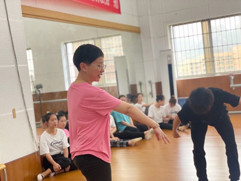 在教学中,她始终坚持以德立身、以艺育人。她把思政元素融入舞蹈课堂,引导学生深入基层、扎根人民。她常说:“舞蹈不止于技巧的淬炼,更是承载着文化传承的责任。我们要跳的是人民的舞,讲的是中国的故事。”
