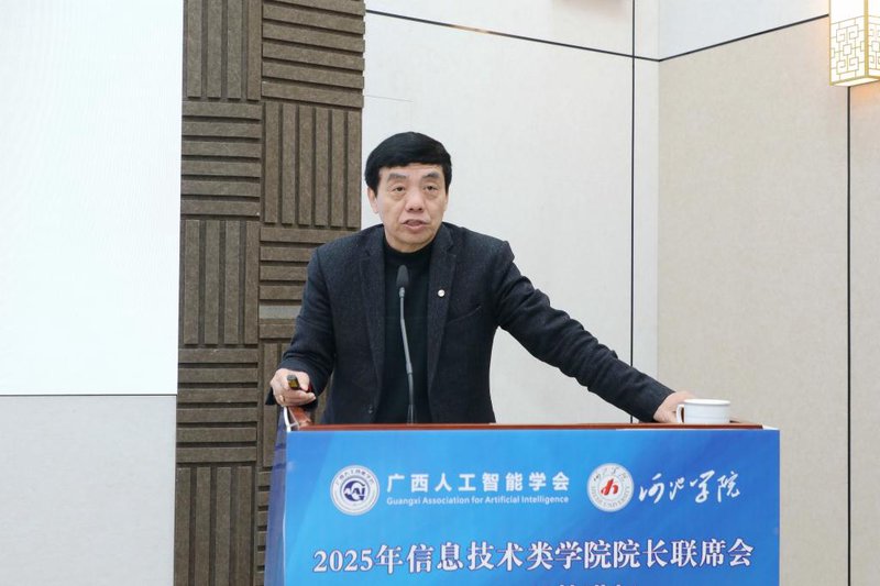 甘毅在致辞中表示,面对人工智能引领的科技革命与产业变革,我校紧跟自治区党委、政府决策部署,全面拥抱人工智能时代,沿着“兴工、厚文、强师、拓新”的学科路径,主动布局信息科技核心赛道。五年前,学校组建大数据与计算机学院、人工智能与制造学院,并建成广西蚕桑生态学与智能化技术应用重点实验室、中国-东盟(河池)网络空间安全靶场等多个高能级平台,并紧扣河池桑蚕、有色金属两大支柱产业,构建了“专业核心+地方特色”课程体系。面对机遇与挑战,学校深知“独行快,众行远”,桂西北的发展既需要高校扎根地方、自主创新,更呼唤校校携手、校地协同、校企联动,合力破解技术瓶颈、搭建人才桥梁。期待在广西人工智能学会的推动下,汇成合作的滚滚洪流。