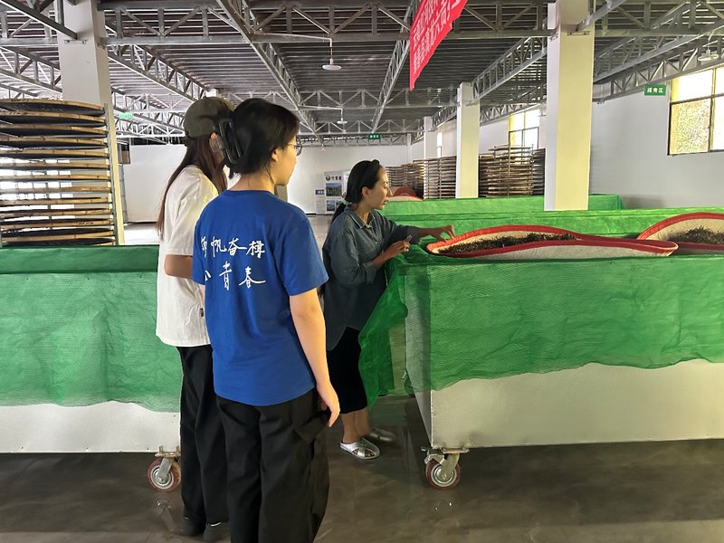 旅游系学生在滇龙六贡茶业车间学习“摇青”工艺