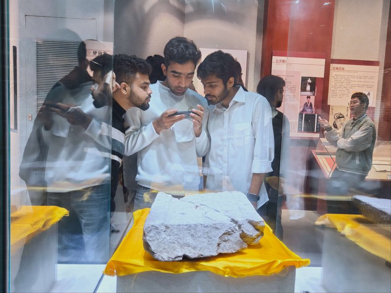 博物馆内,中外学子互动频繁,气氛热烈。来自不同国度的留学生们在学生志愿者的引导下,依次参观了“宜州历史文化陈列”“民俗风情展”等主题展厅。他们时而驻足在出土的石器和陶器前,聆听历史的变迁;时而跟着志愿者模仿趣味盎然的山歌,现场欢声笑语阵阵,掌声不时响起。