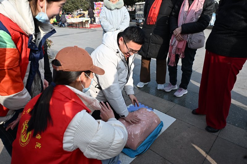 针对围观群众提出的“突发状况下如何快速判断急救时机”“没有专业基础的普通人能否进行CPR急救”“胸外按压的频率该如何准确把握”等实际问题,实践队员们耐心倾听、逐一细致解答,用接地气的语言拆解专业知识,化解学习门槛,同时结合生活中的真实案例,讲解急救过程中的注意事项,让群众不仅能听懂,更能理解背后的原理,切实强化了群众对CPR急救知识的认知深度,提升了大家学习急救技能的主动性和积极性。