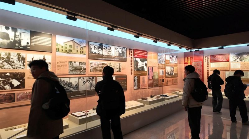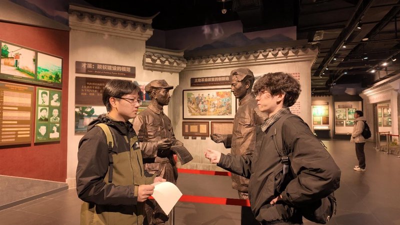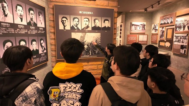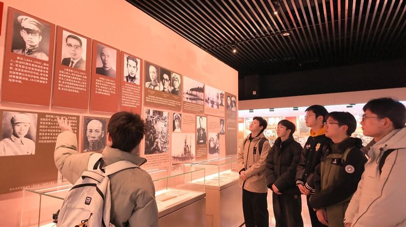 图为实践队员们驻足展厅长廊,老照片与文物展品感受革命岁月。王家炜 供图