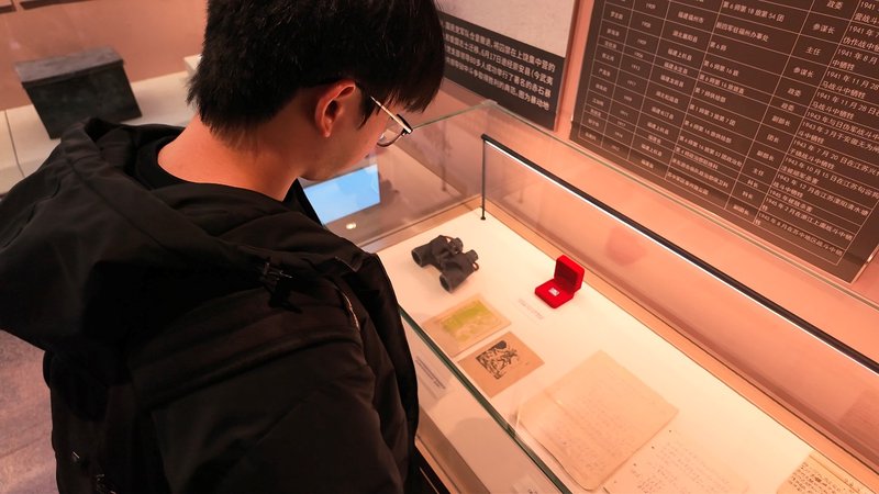 图为实践队员观看革命遗物与书信。王家炜 供图