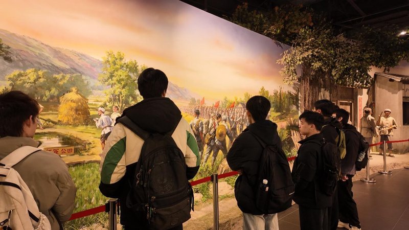 图为实践队员自行参观革命壁画。施伟恒 供图