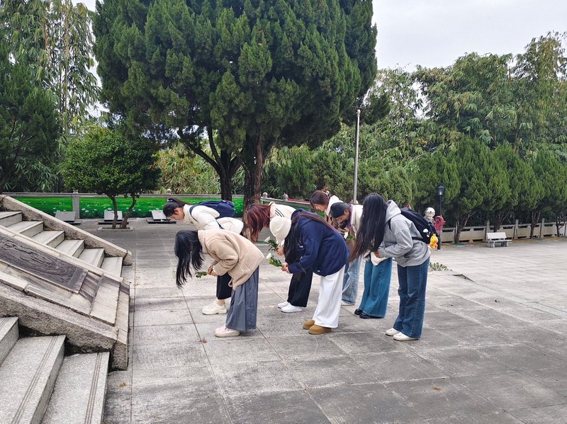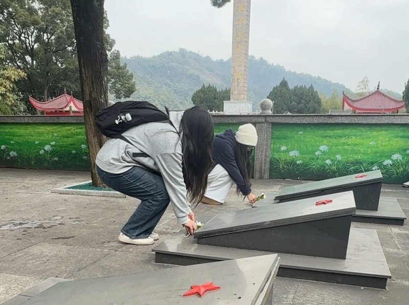 图为实践队队员为烈士献上白菊。郭馨潞 供图