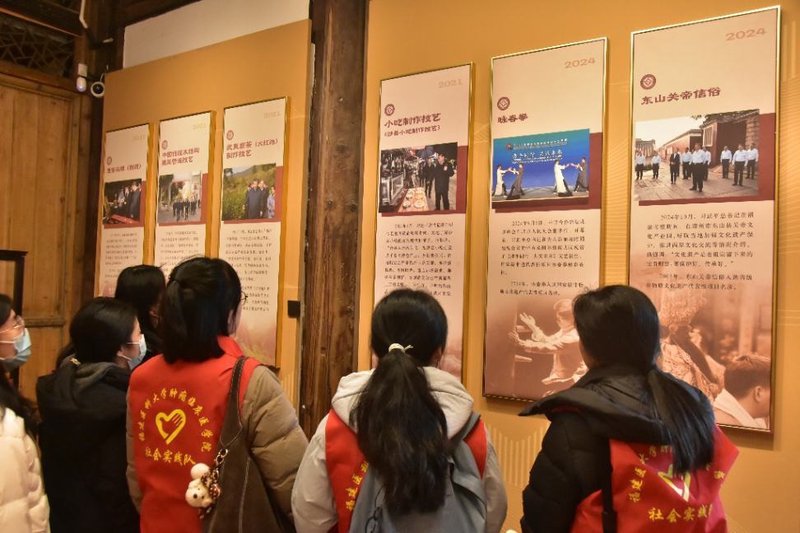 步入博览馆序厅,一张张泛黄的照片与详实的文字资料勾勒出福建非遗保护的清晰脉络。实践队员们首先驻足于展馆前言板前,通过图像与文字了解福建作为非遗资源大省的保护历程。展板详细记录了相关领导同志在福建工作生活期间,调研考察的足迹遍布八闽大地,不仅取得了丰硕的文化保护成果,更点燃了当地群众保护和传承非物质文化遗产的热情。