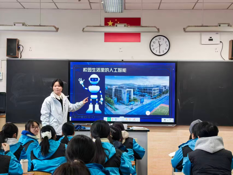 宣讲现场,宣讲团成员将抽象的AI知识与校园场景深度结合,从课堂学习、校园生活、日常生活三个维度展开生动讲解。课堂上的AI精准批改作业、定制练习题、趣味教学工具,能让学习更高效,帮同学们精准查漏补缺、调动课堂积极性;校园里的AI智慧体育设备、智能借书机,让成长更快乐,让体育锻炼更科学、课外阅读更便捷;生活中的AI拍照识图、导航出行、语音助手,让生活更便利,轻松解决日常小需求。一个个贴近生活的案例,一张张直观生动的演示图,让同学们对AI技术的应用有了具象化认知,现场不时响起阵阵掌声。