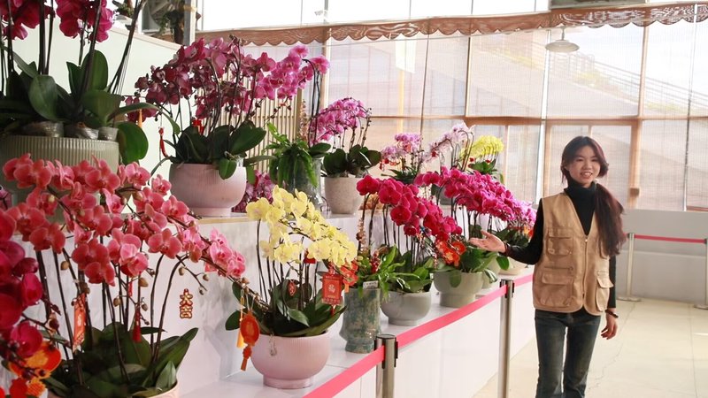图为实践团成员在翁源兰花文旅展示交易中心学习兰花培育技巧。唐羽 供图