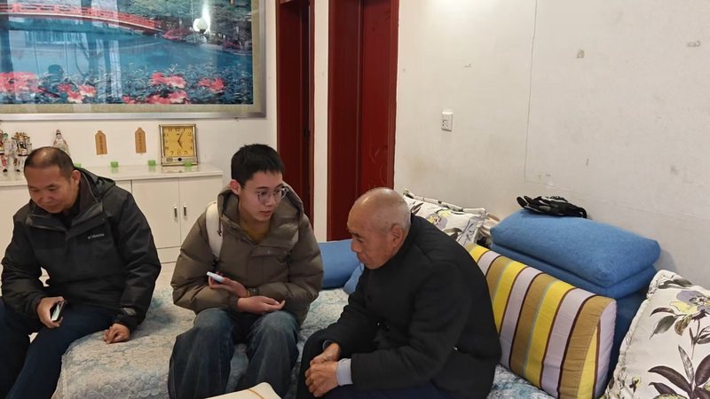 图为东南大学青禾沐渠实践团成员与修渠英雄王朝文爷爷访谈现场。(金耕甲 摄)