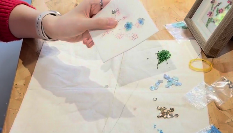林陈睿涵走进厦门百年珠绣工坊,近距离感受这项百年非遗技艺。在传承人指导下,她了解珠绣从设计、选珠到刺绣的全过程,亲手体验玻璃珠与丝线交织的精巧工艺。一颗颗小珠在布面排列成精致纹样,流光溢彩。