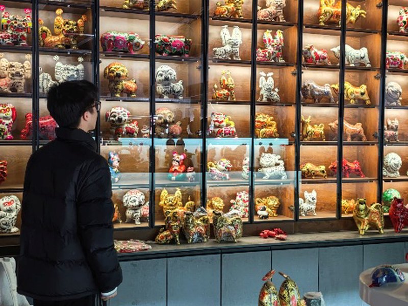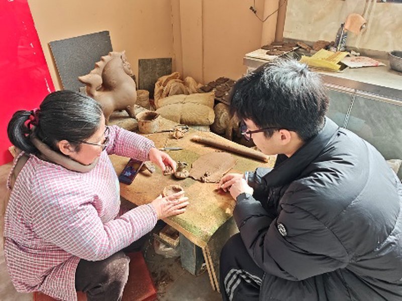 在实践调研中,李润东深切感受到凤翔泥塑已构建起一套成熟完善的非遗体验与产业化转化体系。其突破了传统民俗的单一用途,成功开发出泥塑挂件、文创盲盒等多元化年轻化产品,精准契合当代消费市场需求;他深度参与文创泥塑的创新设计与制作,通过将现代审美与传统造型深度融合,实现了非遗技艺的活态传承与创造性转化。这种“以文创产、以产兴村”的模式,为乡村振兴注入了强劲动力,也为各地非遗传承与乡村发展提供了极具价值的实践范本。