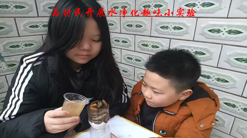 实践中,团队采用区域小分队模式,在益阳、郴州、长沙等地同步推进。活动创新性地采用了“专业科普+问卷调研+净水实验”三位一体的模式。团队成员利用塑料瓶与不同粒径的滤料,通过纯物理过滤方式对野外水源进行净化处理。这一实验向村民展示了将专业知识转化为田间地头“看得见,用得上”的生存智慧。