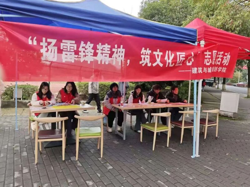 为弘扬雷锋精神,传承雷锋担当,3月21日,建筑与城市规划学院青年志愿者服务中心在老食堂西南侧,用一场别开生面的主题活动,将志愿精神与建筑文化巧妙融合,以文化科普、互动体验等形式,让奉献、友爱、互助、进步的志愿活动在春日校园生根发芽。