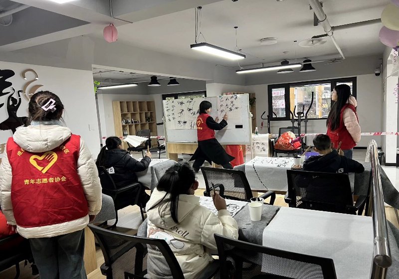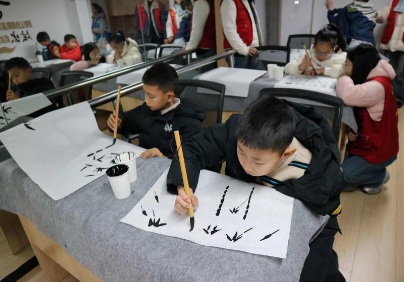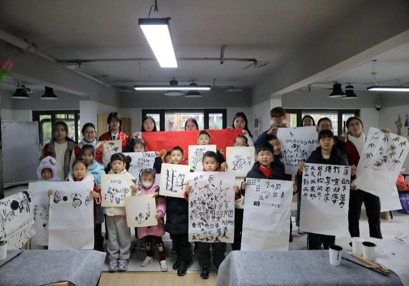 国画教学活动中,志愿者手把手指导孩子们握笔、蘸墨、晕染,从勾勒竹干到点染竹叶,耐心示范每一步绘画技巧。教学过程中,志愿者一边示范一边结合竹子讲解:“竹子坚韧挺拔,不仅是国画里的君子象征,更是国家公园中重要的生态屏障,守护竹林就是守护我们的自然家园。”孩子们认真模仿、大胆创作,在宣纸上勾勒出形态各异的竹子作品,有的画了挺拔的翠竹,有的搭配了竹间小鸟,还有的用淡墨晕染出竹林意境,在挥毫泼墨间沉浸式感受传统文化与生态之美的融合。