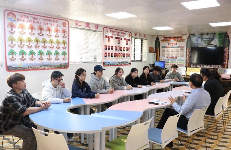 在实践团与围头村党委书记、村委会主任洪水平的座谈中,他深情回溯了围头从“炮战前线”到“婚姻前线”的历史嬗变,并以“围头新娘”这一独特的情感纽带为切入点,系统阐述了村庄如何以血脉亲情为根基,以“精准治理、精准发展、精准服务”为路径,探索出具有围头特色的两岸融合发展模式。洪书记的分享为实践活动注入了思想灵魂和行动遵循,引导实践团不仅要观察现象,更要理解基层治理逻辑,主动将实践体悟对标于“两岸融合发展”的国家战略。