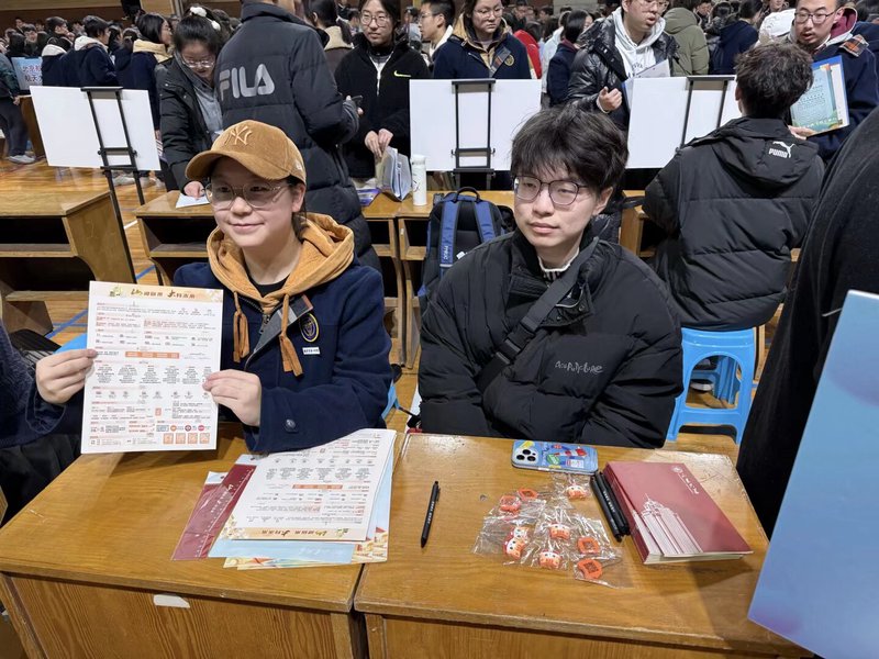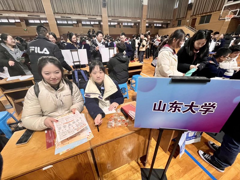 班级分享结束后,我们来到学校体育馆展台,为络绎不绝的学弟学妹细致答疑。现场讲解山东大学本科招生政策,包括专业组志愿、强基计划等招生要点,一对一解答分数、选科、专业选择、校园生活、升学发展等问题,把最真实的山大与最清晰的报考指南送到大家身边。